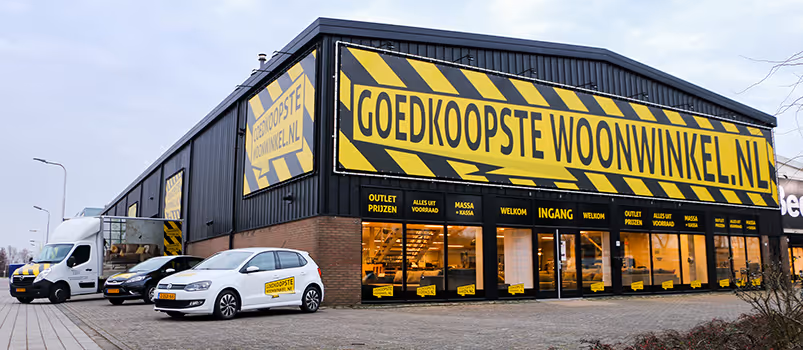 plattegrond met alle winkelsRoute startenDe goedkoopste OUTLET van Nederland met alles op gebied van wonen tegen scherpste prijzen. Goedkoopstewoonwinkel.nl is een uniek outlethal waarbij u uw woon en slaapkamer geheel kunt inrichten. Tevens beschikt de goedkoopstewoonwinkel.nl nog over 2 andere outlets: goedkoopsteboxsprings.nl & goedkoopstebanken.nl.