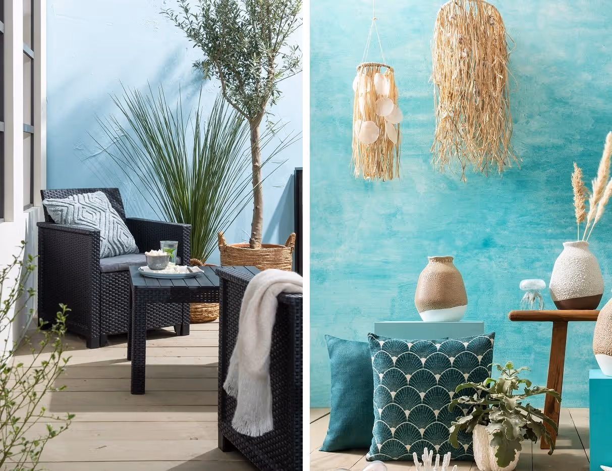 Bij de zomer denk je natuurlijk aan het strand. Zit een strandvakantie er dit jaar niet in, haal de sfeer dan in huis! Ga met een echte boho strandlook voor een iets neutralere inrichting van je huis of tuin. Gebruik naast groen, blauw en geel ook neutraal wit en houtkleuren. Combineer moderne kunst, zomers gekleurd glaswerk en rotan met vrolijke vintage flessen.