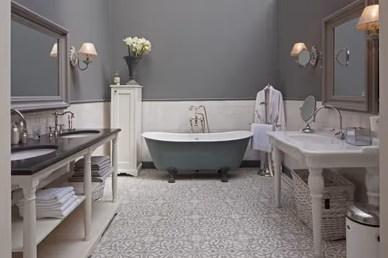 De meubels die je in jouw badkamer zet hebben een grote invloed op de stijl. Kies robuuste meubels met sierlijke details. Denk bijvoorbeeld aan een bad op pootjes. Of zet een houtenkast met een betonnen wasbak neer. Juist de combinatie van natuurlijke materialen met warme kleuren en sierlijke details geven jouw badkamer een landelijke sfeer.