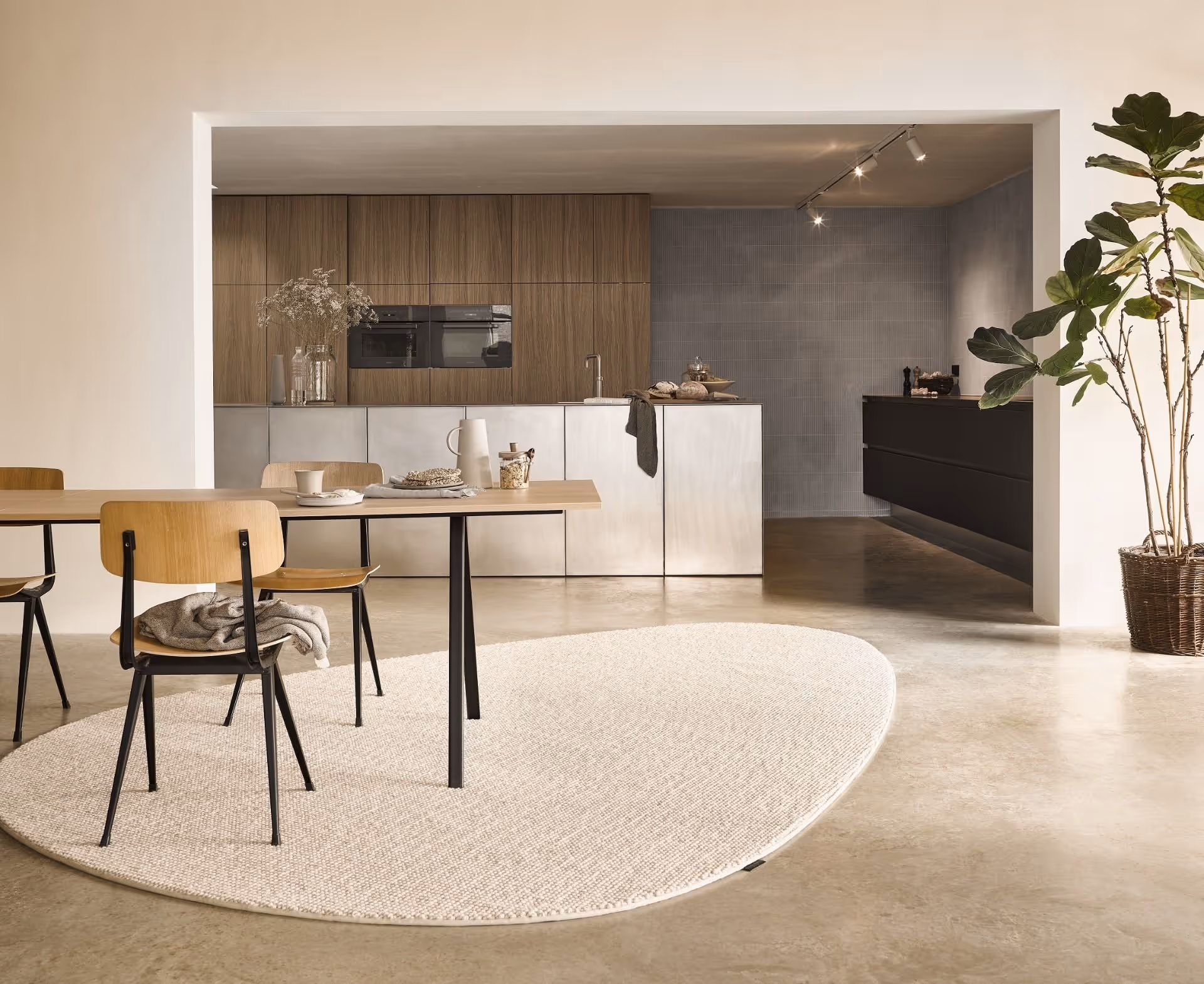 Combineer verschillende materialen, maar ook vormen met elkaar om je interieur ‘zachter’ te maken. Vooral in een strak of industrieel interieur doen ronde en organische vormen wonderen. Denk aan ronde vloerkleden, kussens en een poef, maar ook aan het wisselen van wandbekleding.